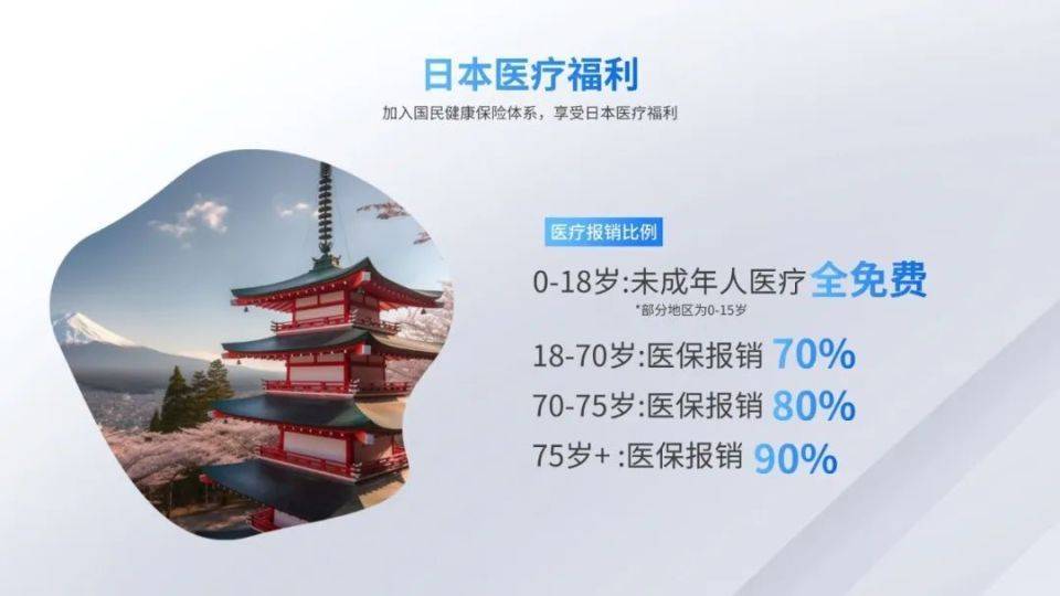 如此为人称赞的理疗体系,让日本成为了人们青睐的宜居国家,无论是举家移居还是养老生活,日本的医疗制度和顶尖的医疗水平,为人们的健康保障提供了有力的支持。在日长期生活的中国人(需要在日本具有在留资格)可以加入日本的『国民健康保険』、就可享受日本医疗福利了